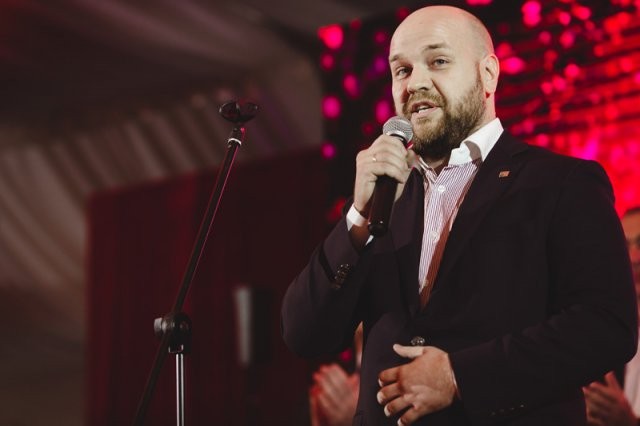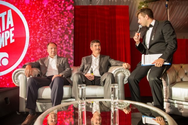 Далее на сцену вышли основатели Landata — Александр Калинин и Евгений Лачков. В ходе шуточного общения с ведущим мероприятия, известным капитаном команды КВН Дмитрием Кожомой, они рассказали о том, что в 1994 году создать дистрибьюторскую компанию, несмотря на все риски, их побудило желание применить свои знания и опыт.