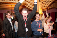 Завершил Конференцию гала-ужин с необычной и яркой развлекательной программой. Программа была представлена в формате тотализатора, в зале были размещены беговые дорожки и представлены животные-игроки. Присутствующие в зале зрители были поделены на команды по количеству вендоров и каждой команде был присвоен свой номер беговой дорожки. Забеги проводили в три этапа, каждый с разными животными-участниками. По итогам каждого забега, в зависимости от скорости и активности животных-игроков на дорожках, каждой команде начислялись баллы, которые затем суммировались и выявлялся победитель. В этот раз победителем стала команда Fujitsu Technology Solutions, набравшая максимальное количество баллов по итогам всех трех забегов. Необычная программа была с воодушевлением встречена партнерами Landata, участники мероприятия азартно и эмоционально сопровождали выступления своих команд.
