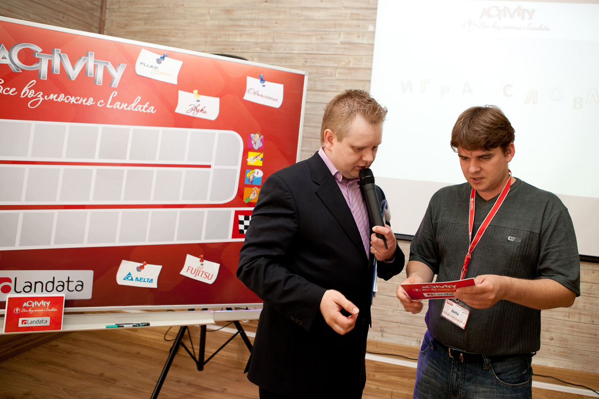 После деловой части Конференции, партнеры приняли участие в необычной развлекательной программе. Для партнеров Landata была проведена игра «Activity. Все возможно с Landata». Присутствующие в зале зрители были поделены на команды по количеству вендоров и приступили к соревнованию. Слово или словосочетание можно было объяснить одним из способов: мимика, вербальные и графические описания. Игра шла на время: чем больше слов сможет успешно показать-объяснить-нарисовать игрок, и чем больше слов будет угадано командой, тем больше очков будет получено. Игра прошла с невероятным азартом и стала приятным завершением вечера.
