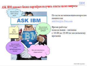 Компания IBM представляет удобный сервис ASK IBM, который поможет бизнес-партнерам получить ответы на все вопросы: