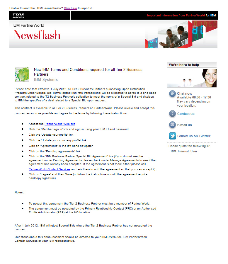 Компания IBM напоминает партнерам о необходимости обновить партнерское соглашение.