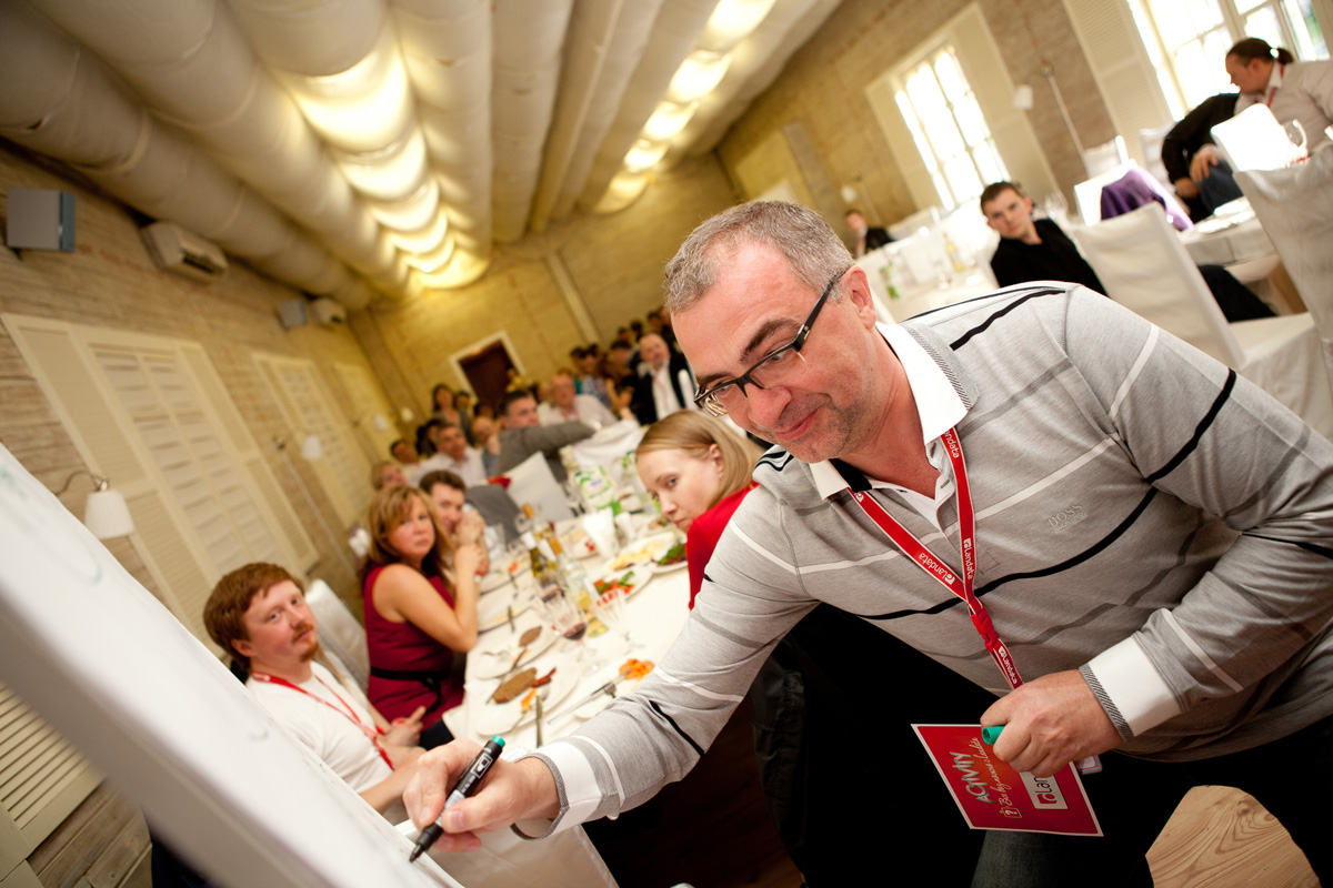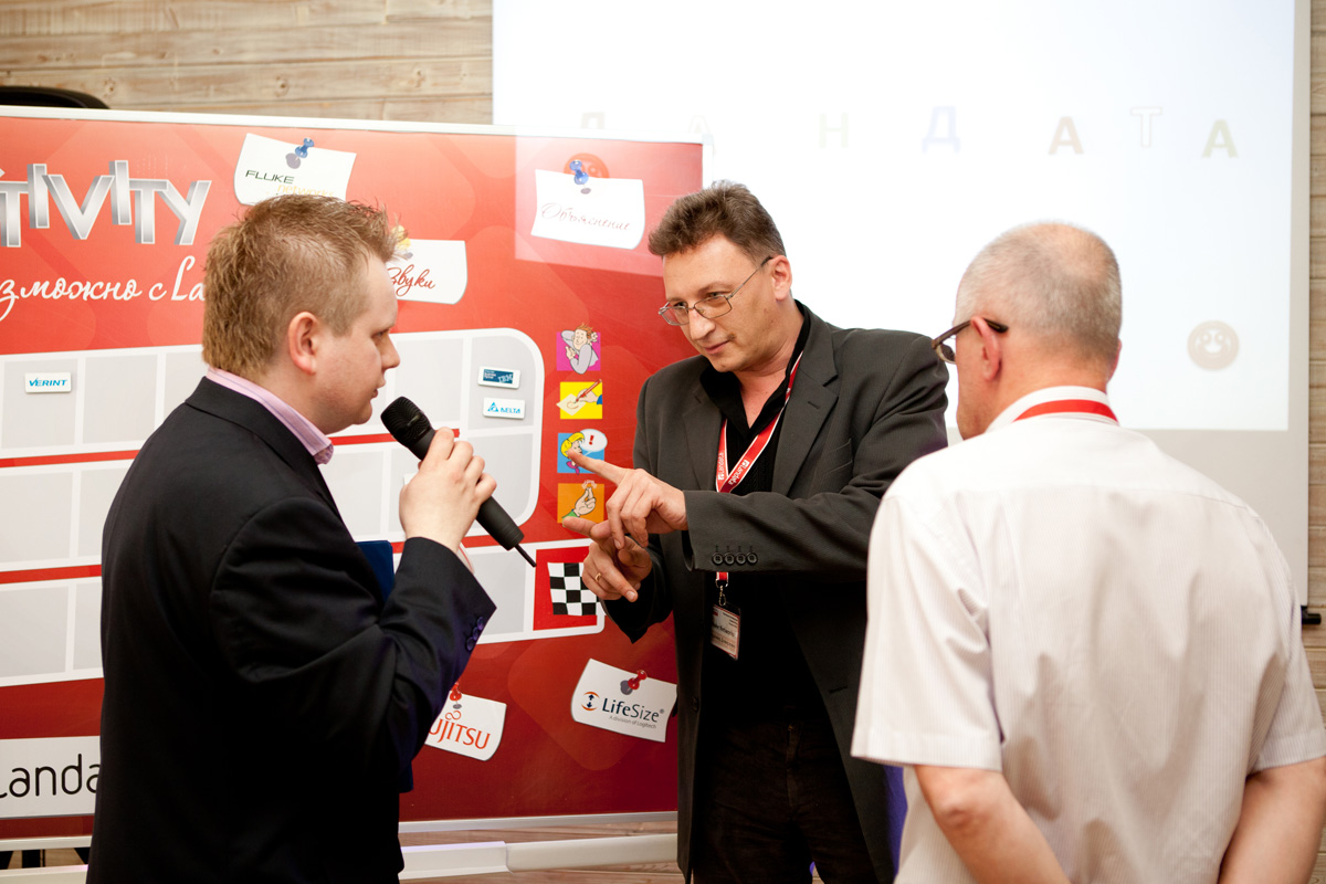 После деловой части Конференции, партнеры приняли участие в необычной развлекательной программе. Для партнеров Landata была проведена игра «Activity. Все возможно с Landata». Присутствующие в зале зрители были поделены на команды по количеству вендоров и приступили к соревнованию. Слово или словосочетание можно было объяснить одним из способов: мимика, вербальные и графические описания. Игра шла на время: чем больше слов сможет успешно показать-объяснить-нарисовать игрок, и чем больше слов будет угадано командой, тем больше очков будет получено. Игра прошла с невероятным азартом и стала приятным завершением вечера.