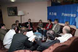 В этом году к проведению дискуссий организаторами были приглашены эксперты IT-рынка, CIO и представители вендоров. Круглые столы были проведены по следующим темам: "Современные тенденции, проблемы и перспективы российского VOIP-рынка" с участием представителей компании Avaya и эксперта Алексея Полунина, "Глобальные слияния и поглощения на современном IT-рынке. Способы повышения эффективности бизнеса у лидеров отрасли" с участием представителей компании IBM и эксперта Павла Иванова, "Тенденции развития ИБП на фоне участившихся энергетических кризисов" с участием представителей компании Eaton Powerware и экспертом Алексея Есауленко и "Беспроводная сеть для подключения к Интернет: ADSL или Ethernet" с участием представителей компании ZyXEL и экспертом Евгением Евдокименко.